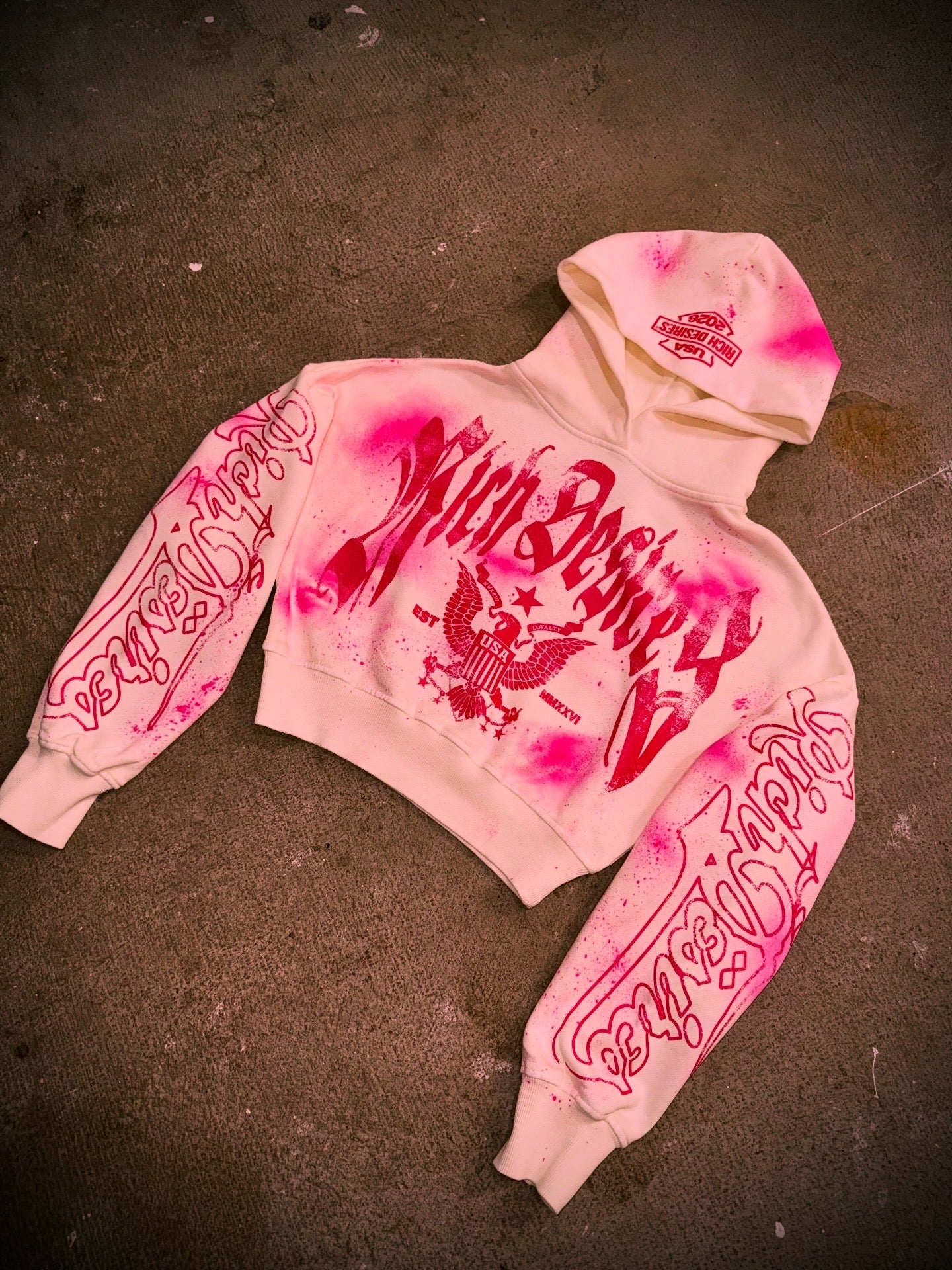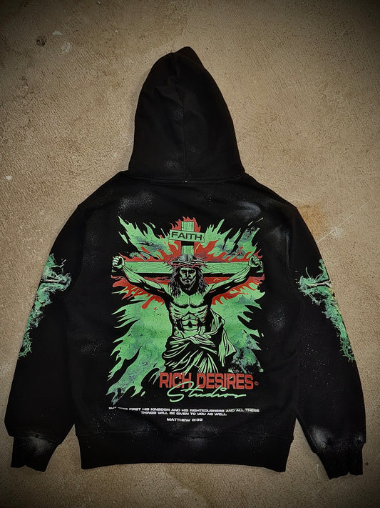 "Righteous Desires French Terry Fleece. w/ Half Rhinestoned hood.